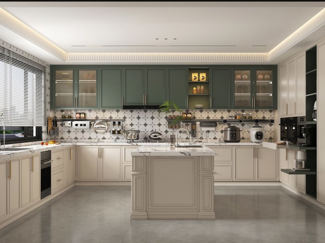 Verander uw keuken in een paradijs van stijl en functionaliteit met Fadior's hoogwaardige roestvrijstalen kasten, die de elegantie van het Franse design belichamen.Met nauwkeurigheid en oog voor detailDeze keukenkast combineert de tijdloze charme van de Franse stijl met de moderne verfijning van roestvrij staal en biedt een luxe maar praktische oplossing voor uw huis.in een harmonieuze mix van zachte crème en diepgroene tinten, een perfecte aanvulling op de slanke, gepolijste roestvrij staal accenten die het onderscheidende karakter van deze keuken definiëren.