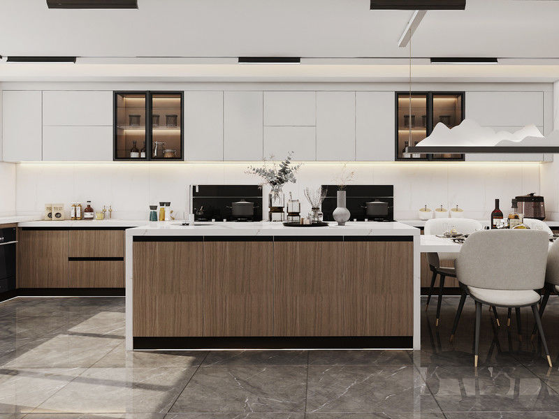 | V: Ondersteunt deze Extra Grote Witte Keukenkast met Aanrechtblad geïntegreerde apparaten of displayfuncties? Ja. De huidige pagina verwijst al naar integratie van apparatuur en georganiseerde opslag/displayplanning, wat inkoopteams helpt beoordelen of de ontwerptaal kan worden doorgevoerd in hoge kasten, eilanden en speciale zones. |