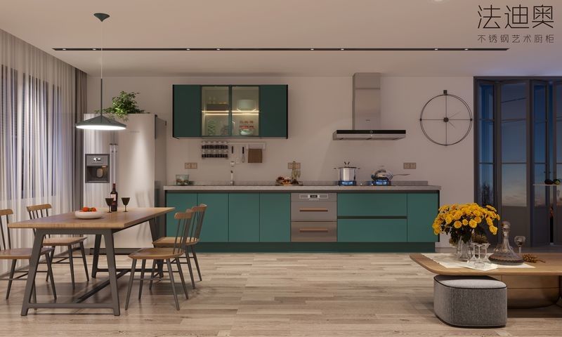 | V: Ondersteunt deze Pine Green Single-Line Keukenkast geïntegreerde apparaten of weergavefuncties? De huidige pagina verwijst al naar apparatenintegratie en georganiseerde opslag/display planning, die inkoopteams helpt te beoordelen of de ontwerptaal over hoge eenheden heen kan,eilanden, en kenmerkende zones. |