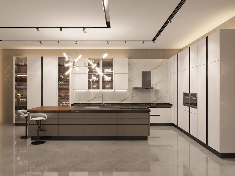 Deze keukenkasten worden gepresenteerd als een ontwerpgericht systeem in plaats van een generieke SKU.Het maakt gebruik van Soft Cream samen met roestvrijstalen kast structuur om een meer opgeloste visuele identiteit voor premium residentiële projecten te creëren.