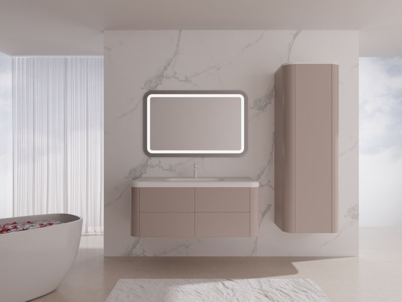 | V: Wat maakt de ontwerptaal van deze Sakura Pink Wandgebouwde Badkamerkas met afgeronde randen onderscheidend? De sterkste aanwijzingen zijn wit samen met modern. Dat geeft de pagina een duidelijker ontwerppunt dan een generieke kastlijst die alleen materiaalclaims herhaalt. |
