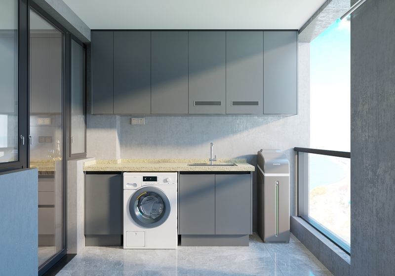 Deze waskast op het balkon is gepositioneerd voor toepassingsgerichte projecten waarbij de roestvrijstalen kaststructuur geloofwaardig moet blijven in vochtige of blootgestelde omstandigheden.Marmeren toonbank, en materiaalkeuzes die de installatie in de loop van de tijd gemakkelijker onderhouden.