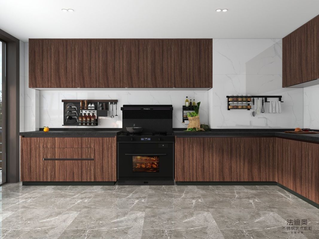 | V: Why does this Luxury Stainless Modern Stainless Steel Kitchen Cabinets With Natural Wood Grain Finish - Customizable And Durableeel Modern Kitchen Cabinet combine wood grain finish with stainless steel structure? De waarde is dat houtkorrel afwerking geeft het project een warmer,meer woon-visuele identiteit, terwijl de structuur van het kastenkasten van roestvrij staal het kastenstelsel gemakkelijk onderhoudbaar en geloofwaardiger maakt voor langdurig gebruik. |