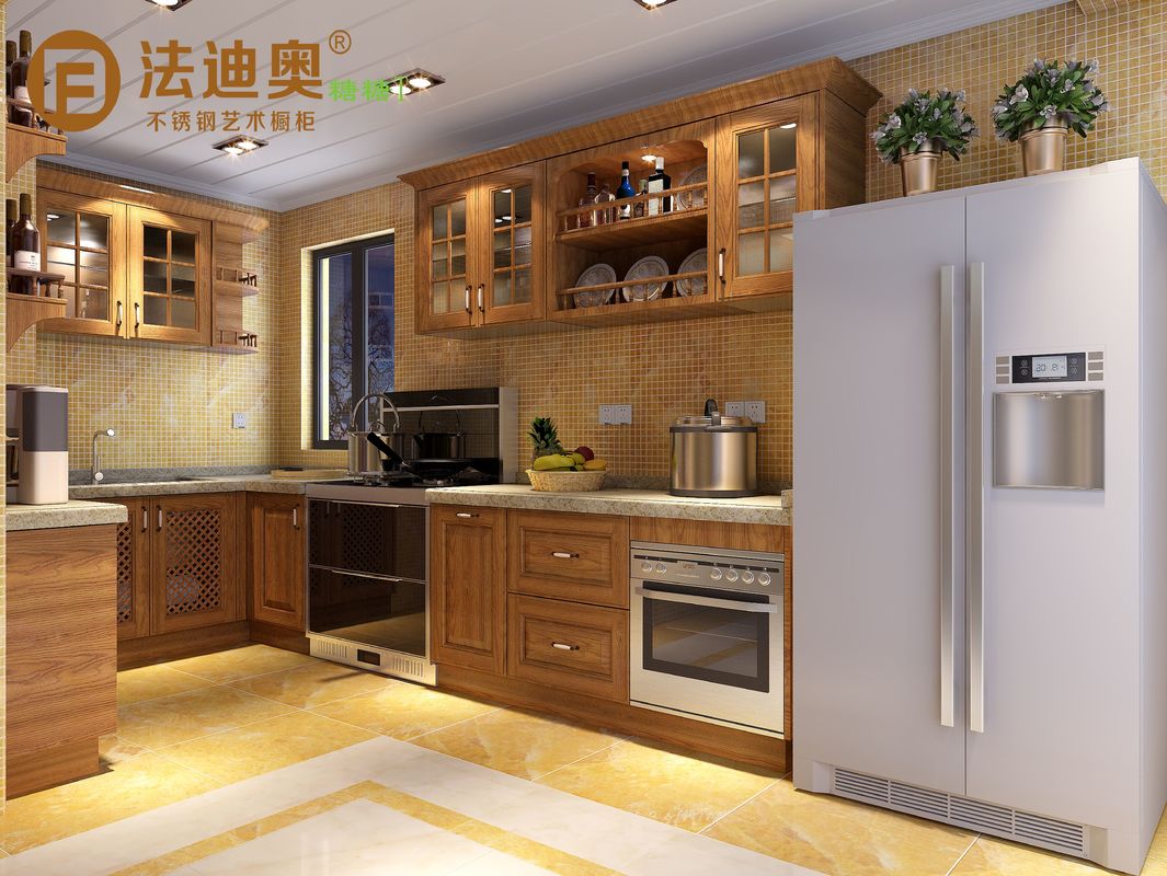 | V: Why does this Wooden-Texture Stainless Steel Kitchen Cabinets With Glass Doors combine warm wood tones with subtle accents that complement modern and classic interiors alike with stainless steel structure? De waarde is dat warme houttonen met subtiele accenten die zowel moderne als klassieke interieurs aanvullen, het project een warmere,meer woon-visuele identiteit, terwijl de structuur van het kastenkasten van roestvrij staal het kastenstelsel gemakkelijk onderhoudbaar en geloofwaardiger maakt voor langdurig gebruik. |