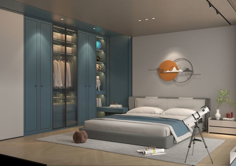 Deze garderobe wordt gepresenteerd als een ontwerpgericht systeem in plaats van een generieke SKU.Het maakt gebruik van Grijs / Blauw samen met roestvrij staal kast structuur om een meer opgeloste visuele identiteit voor premium residentiële projecten te creëren.