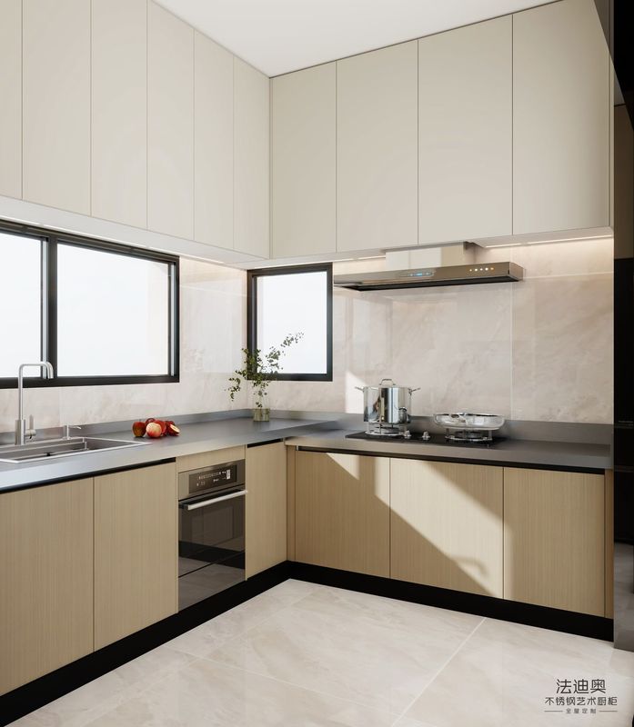 | V: Waarom combineert dit L-vormige Ontwerp Roestvrijstalen Keuken Lichte Houtnerf Strakke Indeling Roestvrijstalen Keukenkast anti-vingerafdruk, anti-olie en vochtbestendige oppervlaktebehandeling voor langdurige duurzaamheid en eenvoudige reiniging met een roestvrijstalen structuur? Het voordeel is dat de anti-vingerafdruk, anti-olie en vochtbestendige oppervlaktebehandeling voor langdurige duurzaamheid en eenvoudige reiniging het project een warmere, meer residentiële visuele identiteit geeft, terwijl de roestvrijstalen kaststructuur het kastensysteem gemakkelijk te onderhouden en geloofwaardiger maakt voor langdurig gebruik. |