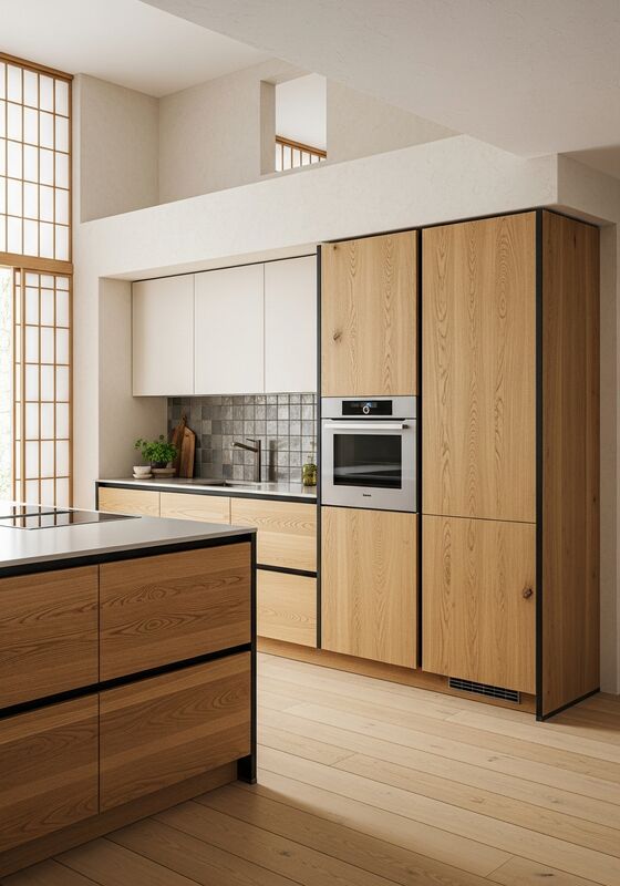 | Hoogtepunten van ontwerpRustige Japandi ️ warm minimalisme met organische textuur, verspreid licht en gereserveerde materiaalpaletrichting met natuurlijke eikenhoning (ankerton), warm perkamentwit (bovenkasten en schermen),warm klei grijs (accenten van keramische inspiratie), zwart ijzer (dunne structuur), gedisciplineerde verhoudingen,en natuurlijke Japanse eiken fineer over 304 roestvrij staal kern voor authentieke warmte met structurele integriteit. De pagina moet worden gelezen als een opgeloste specificatie, niet als een generieke opslagbox. |
