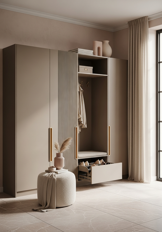 | Q: What cabinet depth is usually recommended for a shoe storage cabinet? Recommended depth depends on the room type, circulation width, appliance adjacency, and storage brief. In most premium projects, depth is decided during layout review rather than copied from a catalog, because a better-fitting module plan improves both appearance and daily usability. |
